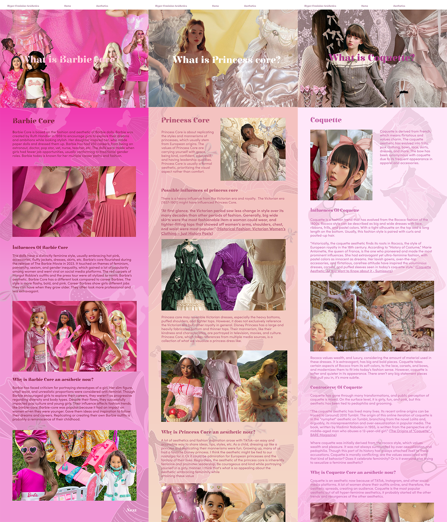 A collection website of the hyper-feminine aesthetic. It is an umbrella term for girly styles, including coquette, Barbie-core, soft girl, and princesscore, among others. Primarily celebrating femininity through the stereotypical idea of a girl.
