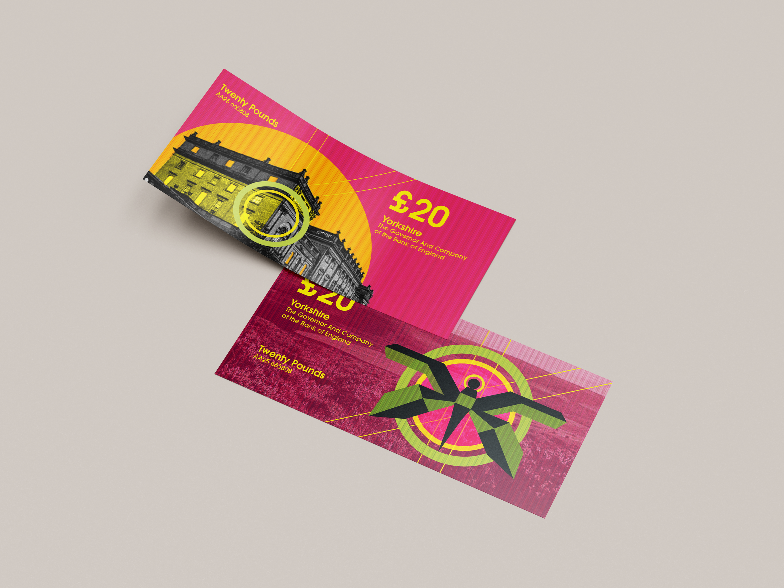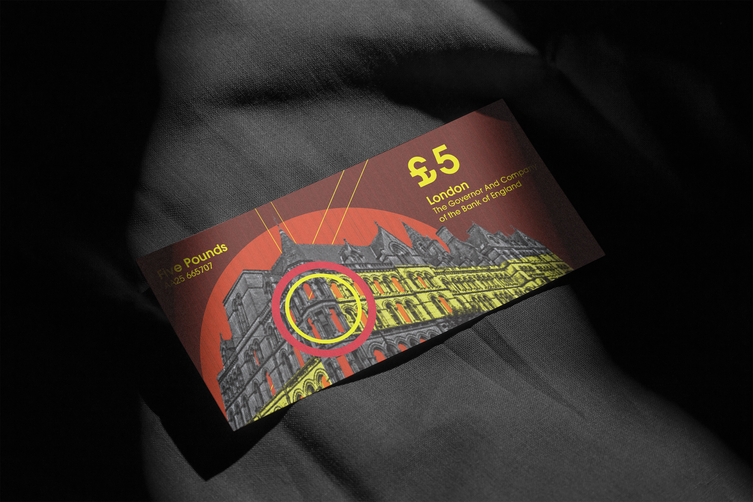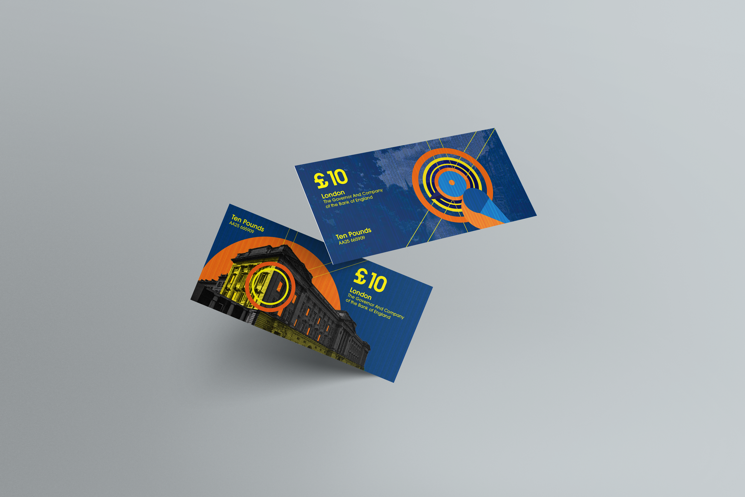 This iteration of the English bank note is more modernized. Used elements of pop art and constructivism movements, highlighted by the colors and shapes. The five-pound note is a representation of Northern England, the ten-pound note is a representation of central England, and the last note is represented by the south of England.